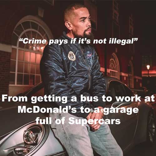 Brown has also been linked to Joe Macari Performance Cars, where he has access to their showrooms. Evidence suggests he uses their luxury cars in photos and videos to bolster his false image of affluence, such as appearing with a LaFerrari in a Carwow YouTube episode and McLaren in promotional content.
